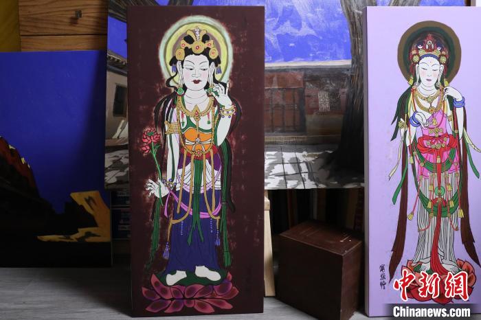 北京外國語大學藝術(shù)研究院院長寧強以敦煌莫高窟壁畫為靈感創(chuàng)作的繪畫作品?!⌒煅┈?nbsp;攝