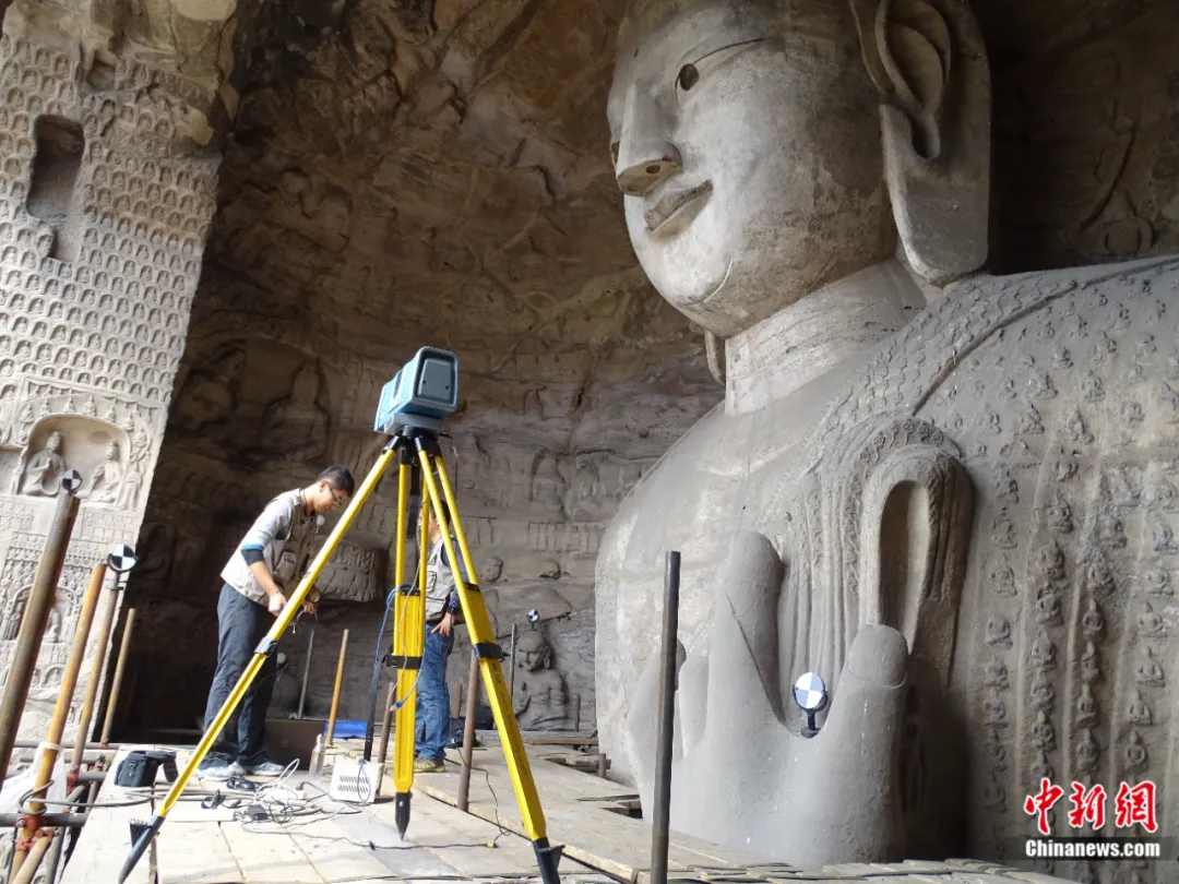 云岡研究院工作人員進行數(shù)字化信息采集。云岡研究院供圖