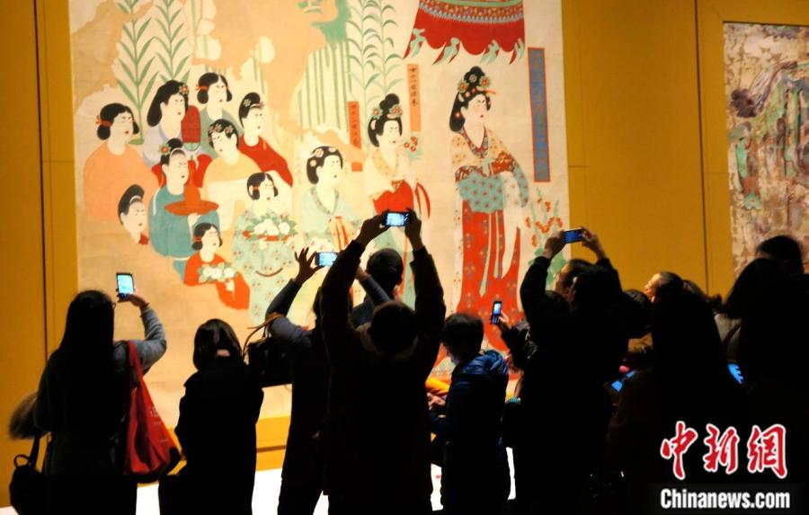 2017年1月,觀眾在成都博物館參觀“絲路之魂·敦煌藝術(shù)大展暨天府之國與絲綢之路文物特展”。樊甲山 攝