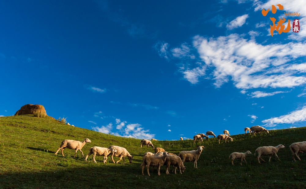 遠(yuǎn)處白云悠悠,百萬(wàn)畝草原一望無(wú)垠,羊群點(diǎn)綴的大草原和那殘存的烽火臺(tái)相映成趣,呈現(xiàn)出一幅綠意盎然的詩(shī)意畫(huà)卷。