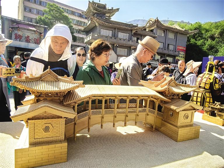 看動(dòng)態(tài)非遺,每年的“煙火蘭州迎新春”和“文化和自然遺產(chǎn)日”活動(dòng)中,聯(lián)動(dòng)各縣區(qū)開展舞龍、舞獅、蘭州太平鼓、蘭州高高蹺、軍儺、旱船、大秧歌等社火展演,開展蘭州刻葫蘆、蘭州剪紙、蘭州泥塑、蘭州黑陶、蘭州陶藝、古建模型等非遺技藝展示,那叫一個(gè)紅火。所到之處,人潮涌動(dòng),歡呼叫好,不絕于耳。