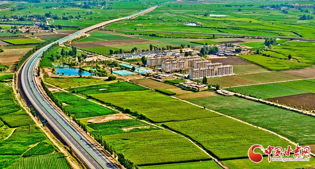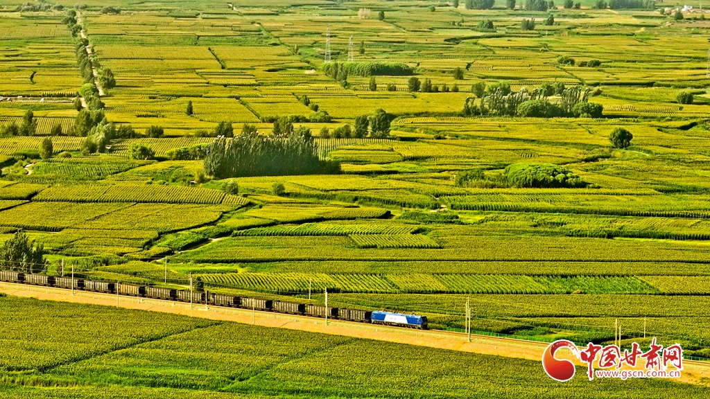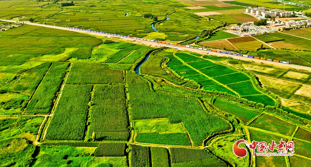 盛夏時節(jié),位于祁連山下的甘肅省張掖市甘州區(qū)烏江鎮(zhèn)萬畝即將收獲的制種玉米生長旺盛,宛若鋪了一層綠色的“巨毯”。綠油油的供港蔬菜基地上,種植農(nóng)戶們正忙碌采摘。田間林木,穿境而過的蘭新鐵路大動脈和S237(蒙甘--青海)一級公路上,一列列火車、一輛輛汽車疾馳,勾勒出一幅幅美麗的田園生態(tài)畫卷。