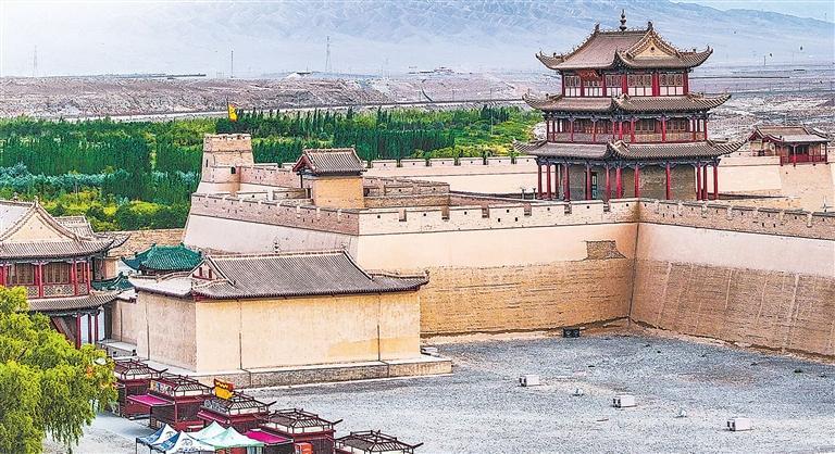 如今,陽(yáng)關(guān)、玉門關(guān)已和莫高窟、月牙泉一樣,為中外游客所向往。在陽(yáng)關(guān),不同膚色的游客齊聚王維塑像前,聽導(dǎo)游用中文、英語(yǔ)、日語(yǔ)講述“西出陽(yáng)關(guān)無(wú)故人”。在玉門關(guān),游客穿上漢服,打卡留念。