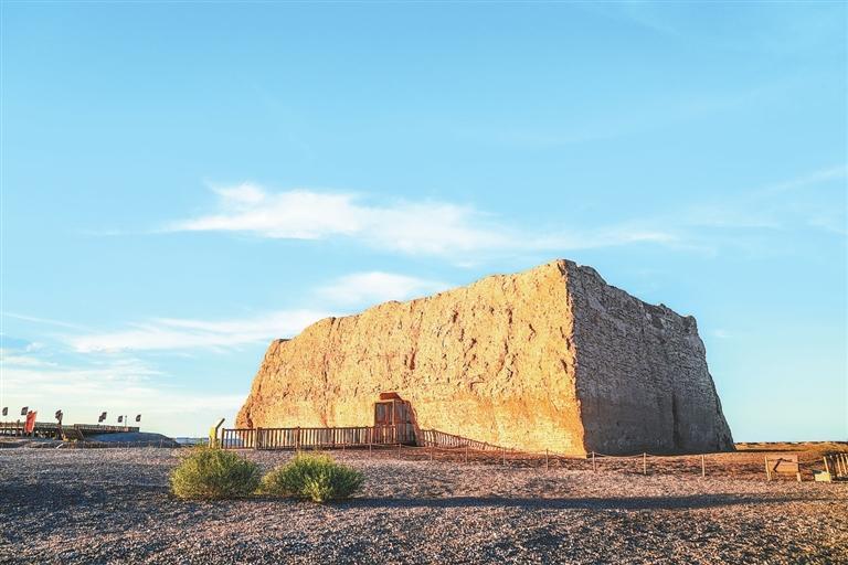 歲月洗禮,如今的陽(yáng)關(guān)已沒(méi)了蹤跡,只剩下一片叫作“古董灘”的洼地,和遠(yuǎn)處的陽(yáng)關(guān)烽燧。戈壁深處的玉門關(guān),被稱為“小方盤城”,走進(jìn)城中仍能感受到雄關(guān)莊嚴(yán)。往西5公里處,還能見到一段漢長(zhǎng)城頑強(qiáng)挺立。