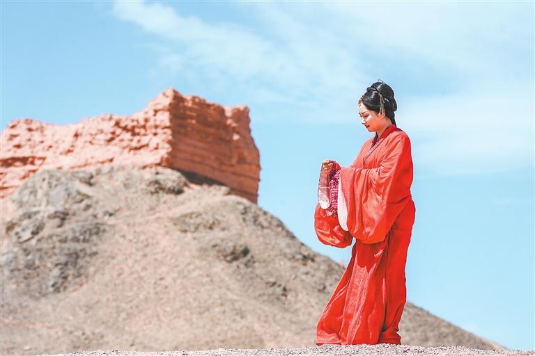 陽關(guān)遺址前,漢服留影仿佛穿越千年。