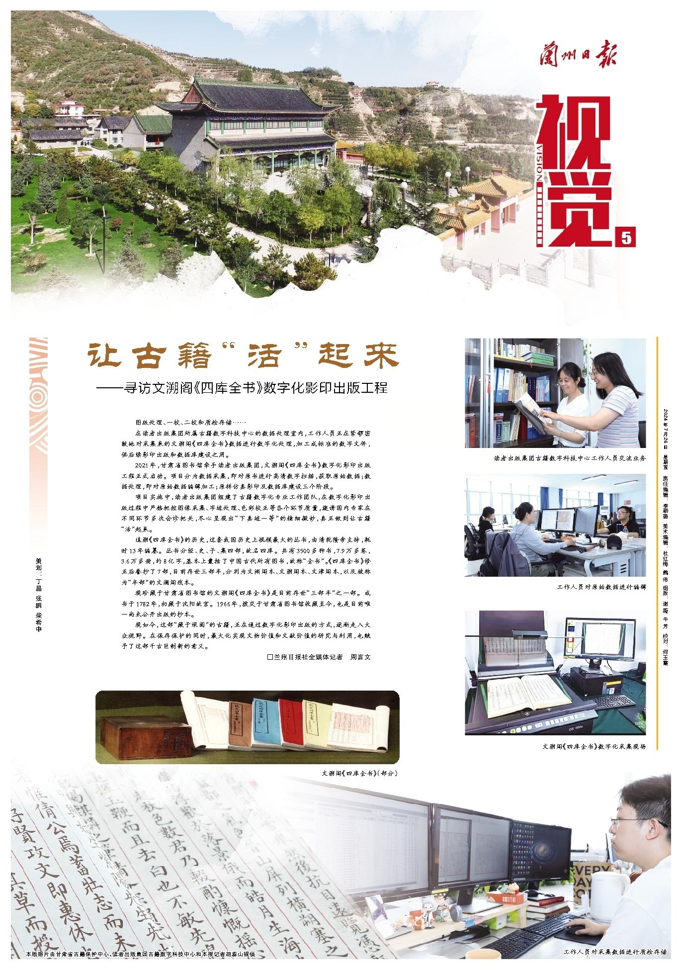 原標題:讓古籍“活”起來——尋訪文溯閣《四庫全書》數(shù)字化影印出版工程