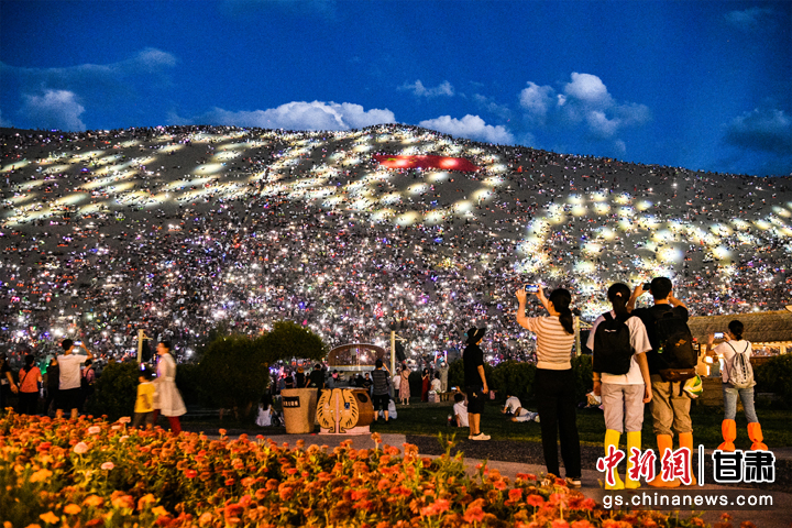 盛夏7月,每當夜幕降臨后,甘肅省敦煌市鳴沙山月牙泉景區(qū)被精心布置的燈光點亮,上萬名游客手機的燈光與天空中的繁星交相輝映,營造出一種夢幻般的浪漫氛圍。