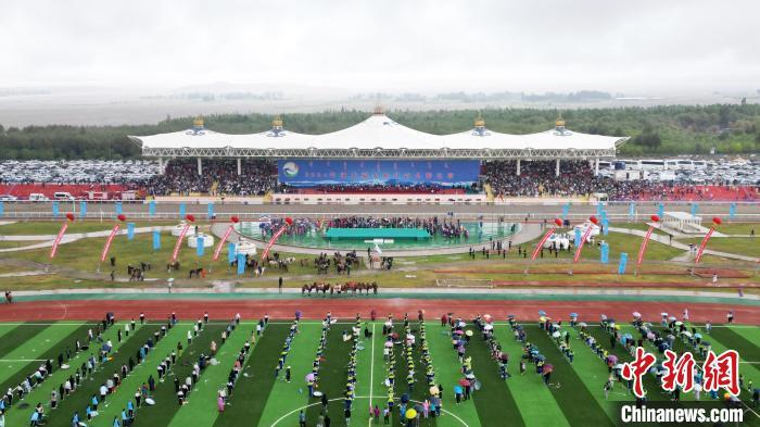 開幕式上,雪山蒙古族服飾方隊、未來之星方隊、游牧文化方隊、男兒三技藝方隊等紛紛入場?,F(xiàn)場彩旗飄揚,歡呼聲此起彼伏,熱鬧非凡,民眾沉浸在歡樂的氛圍中。