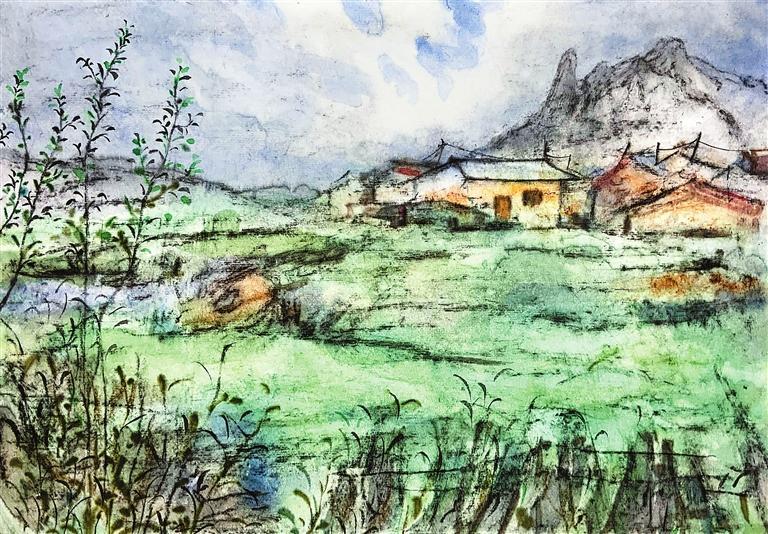 平常在畫室里畫畫時,喜歡用淡淡的墨色體會與宣紙碰撞所散發(fā)出的獨特墨韻。但是描摹西部,需要更加深厚、絢爛、豐富的色彩,才能表達(dá)我們的感受,寄予我們對這片土地的深情。離開故土,踏向遠(yuǎn)方,那份對家鄉(xiāng)的無盡思念和深深眷戀,是每一位游子心中難以言喻的情感,如同無形的紐帶,將我們與故鄉(xiāng)緊緊相連。這種情感,如同西北高原上那連綿不絕的山脈,既遙遠(yuǎn)又清晰,既冷峻又溫暖。