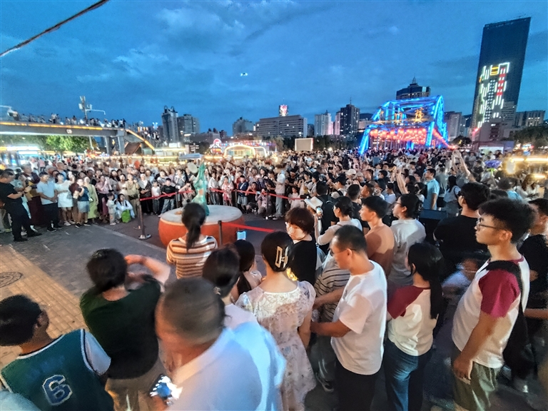 夜游黃河項目則圍繞黃金水道,結合蘭州南北狹長、“橋梁之都”的特點,串聯(lián)黃河母親、中山橋、白塔山,形成“夜游黃河”3條精品航線,開通水上巴士環(huán)線,并依托碼頭創(chuàng)新開展露營、草地婚禮等活動,全方位展示了黃河蘭州段魅力。同時,黃河之濱音樂展演、黃河市集等豐富精彩的活動也已經(jīng)成為“夜游黃河”的常態(tài)化演出和節(jié)目。