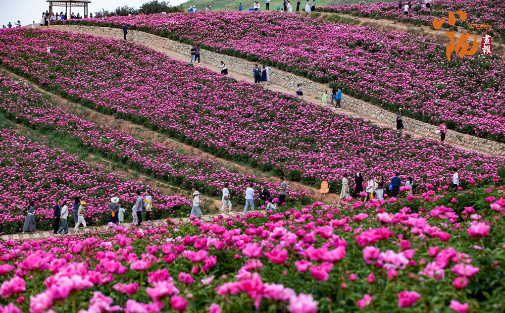 芍藥花靜靜地綻放,風姿綽約,粉紅色的花海如給大地披上了艷麗的衣裳,徜徉其中,俯身輕聞花香,讓人心曠神怡。