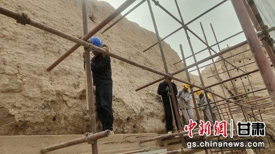 “破城子遺址南墻、西墻保護維修工程(二期)是今年4月20日開工的,工期2年。目前已經(jīng)完成總工程量的50%,其中夯筑支頂423立方,預計2025年11月20日全面竣工。”敦煌研究院文物保護技術(shù)服務(wù)中心破城子遺址南墻、西墻保護維修工程(二期)現(xiàn)場負責人王新卿說。