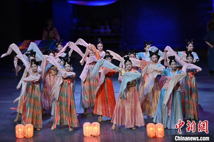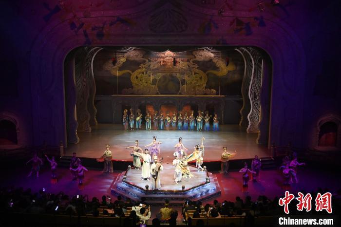 9月5日晚,甘肅敦煌旅游熱度不減,眾多游客觀看大型洞窟式沉浸體驗(yàn)劇《樂(lè)動(dòng)敦煌》。該劇溯源敦煌文化,借助對(duì)莫高窟壁畫、藏經(jīng)洞古籍進(jìn)行解讀,用全息投影、3D威亞等高科技手段,以全沉浸式的呈現(xiàn)方式,演繹西域少年追尋藝術(shù)的傳奇故事。劇中運(yùn)用了琵琶、排簫、阮等民族樂(lè)器及仿制敦煌古樂(lè)器的音色,通過(guò)胡旋舞、腰鼓舞、琵琶舞等典型舞蹈,展現(xiàn)了敦煌壁畫中的樂(lè)舞盛景,全面展現(xiàn)敦煌傳承千年的樂(lè)舞文化魅力。九美旦增 攝