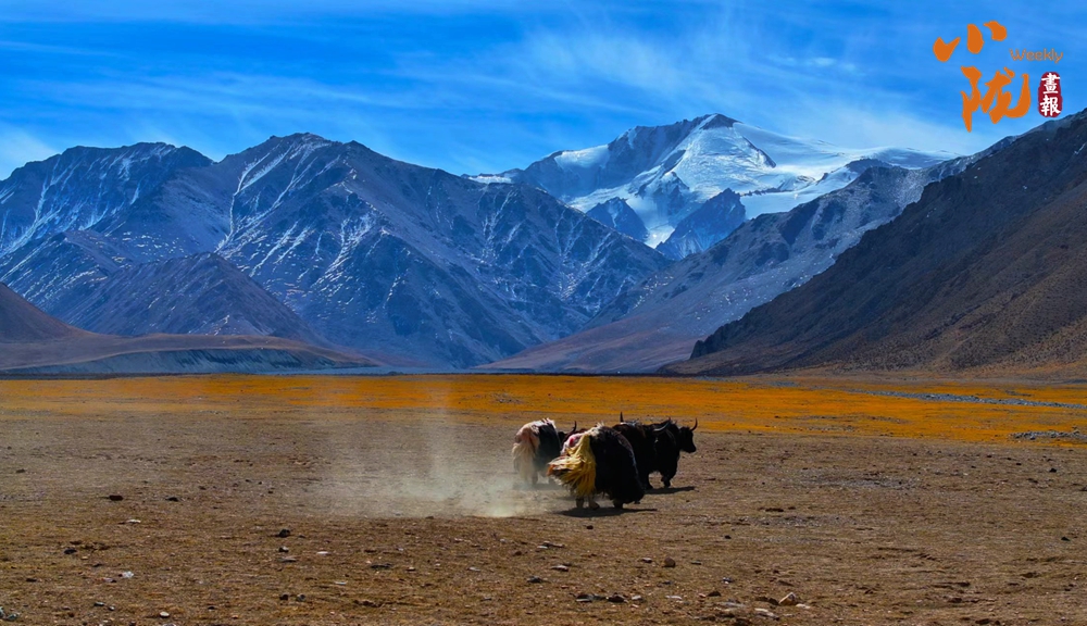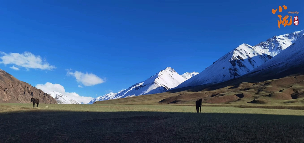 初秋,草香撲面而來(lái),綠草漸被秋風(fēng)染黃,與雪山、藍(lán)天繪成一幅層次鮮明的風(fēng)景畫。