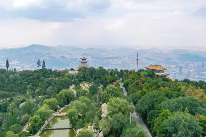 蘭州市城關(guān)區(qū)皋蘭山三臺閣景象。新華社記者 郎兵兵 攝