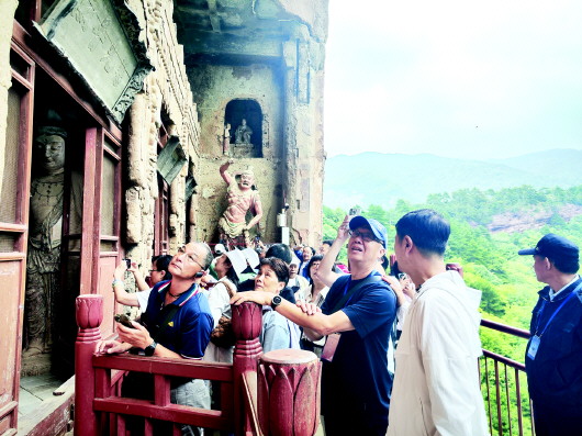 活動(dòng)當(dāng)天,來自臺(tái)灣文博領(lǐng)域的專家學(xué)者一行,懷著對(duì)古老文化的敬仰與憧憬,在麥積山石窟感受石窟藝術(shù)的獨(dú)特魅力、在天水工業(yè)博物館探尋工業(yè)發(fā)展的歷史脈絡(luò)、在伏羲廟體悟中華始祖文化的博大精深、在天水市博物館領(lǐng)略豐富的歷史文物承載的歲月記憶、在天水古城品味古色古香的韻味與風(fēng)情……一系列豐富多彩的文化交流活動(dòng),讓他們近距離感受到了古城天水的風(fēng)景名勝、文化遺產(chǎn)保護(hù)傳承及山川風(fēng)物。