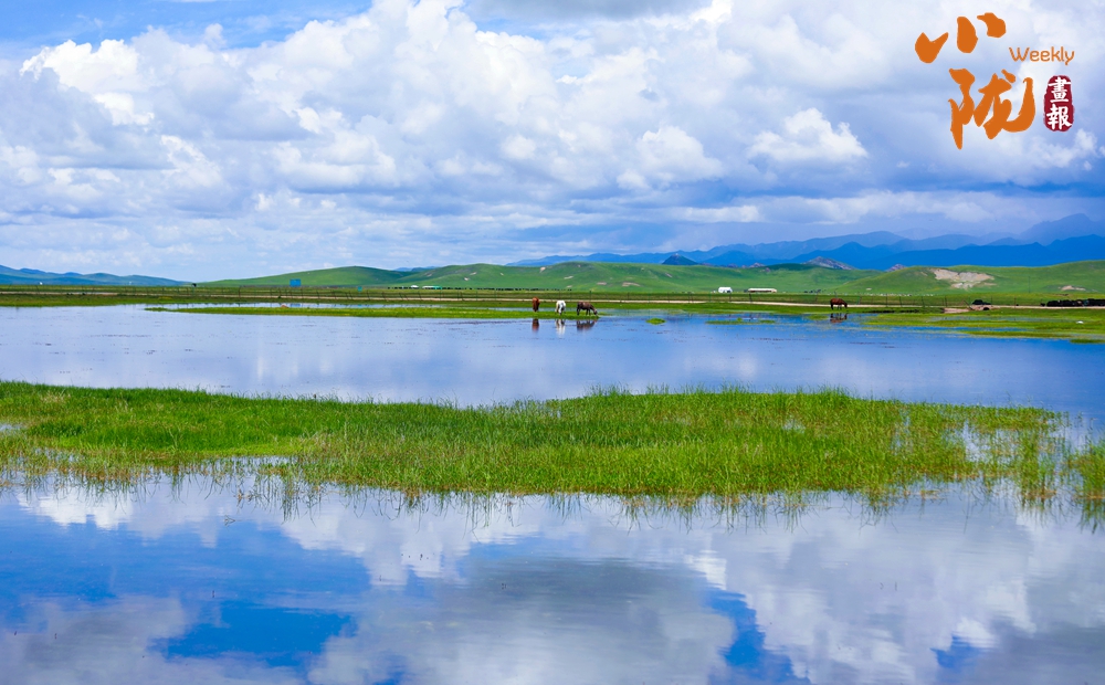 一望無際的沼澤之中,成群的馬匹和各種珍稀動(dòng)植物在這里和睦共處,湖水環(huán)繞著草原,草原又擁抱著湖水,水天一色。
