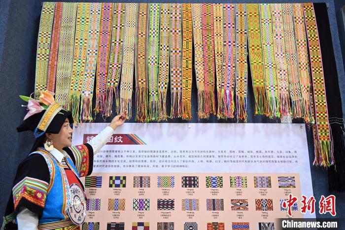 9月26日,甘肅省甘南藏族自治州舟曲縣,當?shù)夭刈鍕D女展示紡織好的錦帶。錦帶是舟曲藏族婦女用以束腰、扎靴、攏發(fā)乃至點綴服飾的花帶子,艷麗多彩、圖案優(yōu)美。每逢吉慶節(jié)日,藏族婦女穿戴的華麗盛裝就需要少則五、六條,多則十幾條寬窄長短相宜的錦帶來裝飾。據(jù)介紹,藏族織錦帶技藝歷史悠久,一千多年以前,古羌族和吐蕃已有了較發(fā)達的手工編織技術(shù),在艱難的生活條件下對服飾等生活用品除實用功能之外,已經(jīng)有了強烈的審美追求,是研究舟曲羌藏文化的“活化石”。中新社記者 九美旦增 攝