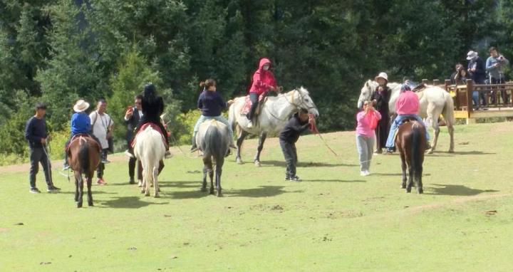 游客在扎尕那景區(qū)內(nèi)騎馬游覽。(受訪者供圖)