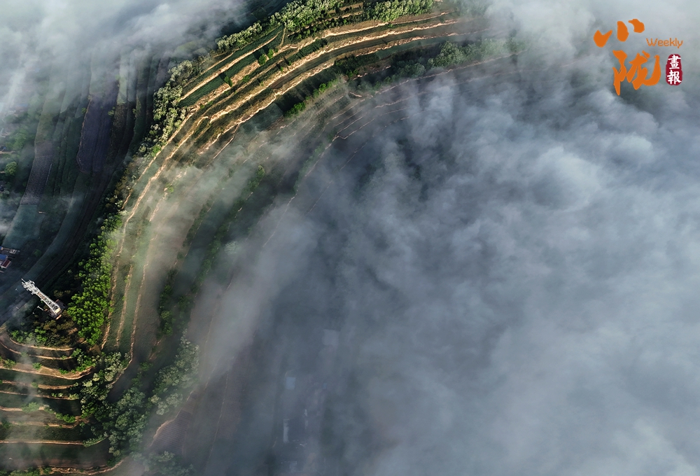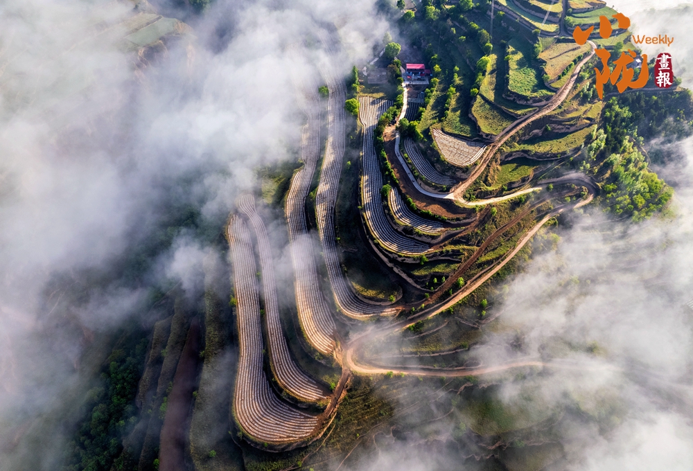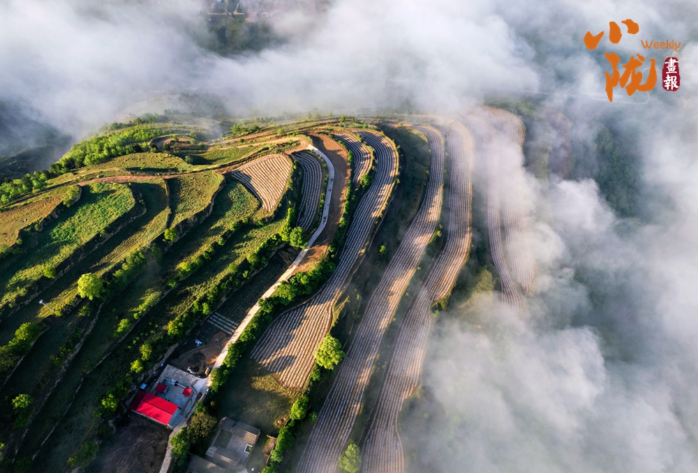 在起伏山巒的坡洼、嶺脊、溝壑、峁頭上,層層疊疊、高低錯(cuò)落的梯田連綿不絕,沿著山體曲折盤繞,最后連成了令人驚嘆的一幅層次鮮明的立體巨畫。