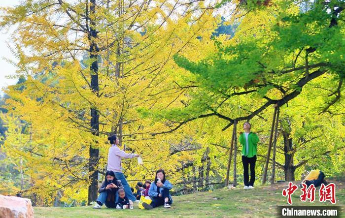 中新網(wǎng)蘭州10月28日電(高展)“霜降”過后銀杏黃。秋陽映照下,甘肅隴南市徽縣嘉陵鎮(zhèn)田河村宛如披上絢麗新裝,詩意夢幻。此地四周青山環(huán)抱,嘉陵江如靈動絲帶蜿蜒流淌,水豐土腴、氣候溫潤,為銀杏營造絕佳生長環(huán)境?;湛h委副書記、縣長王福全稱,銀杏,不僅承載著千年的歷史沉淀,更以其獨(dú)特的風(fēng)姿和韻味,成為徽縣一張亮麗的名片。