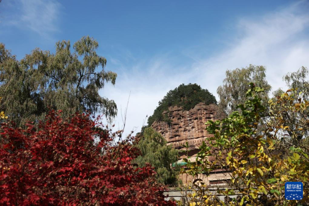 這是11月2日拍攝的麥積山石窟秋景。新華社記者 陳斌 攝