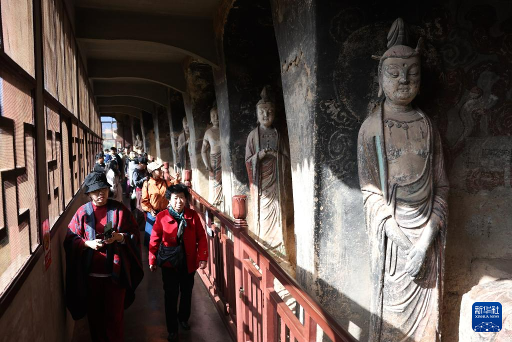 11月2日,游客在麥積山石窟參觀。新華社記者 陳斌 攝