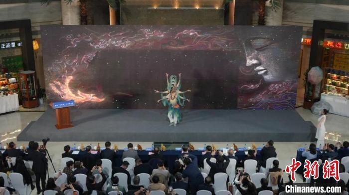 11月20日,敦煌“會(huì)展季”北京推介會(huì)舉行。圖為推介會(huì)現(xiàn)場(chǎng)的文藝表演。主辦方供圖。
