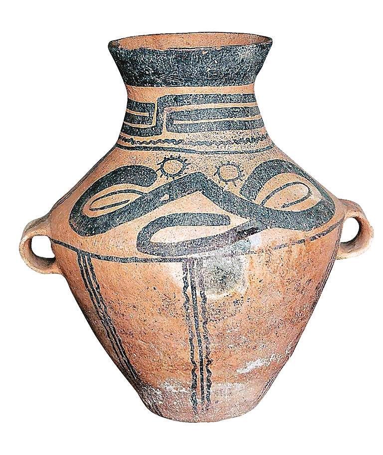 姬家川類型雙勾太陽紋彩陶罐