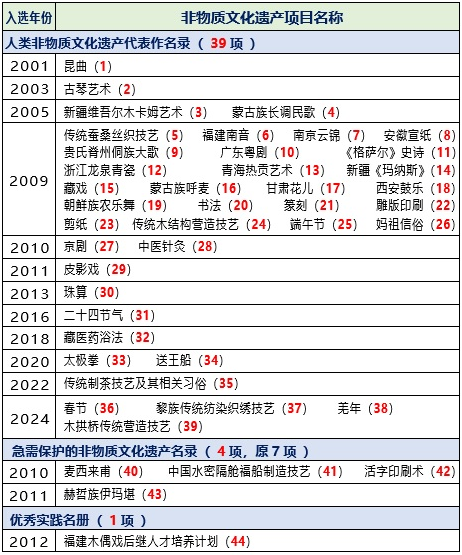 一、我國共有44個入選世界級的非遺項目,總數(shù)居世界第一