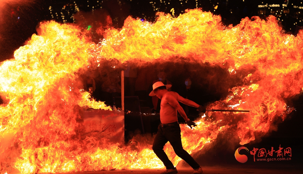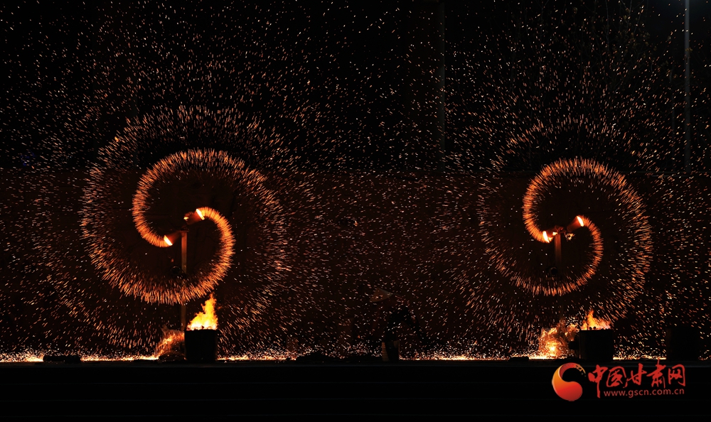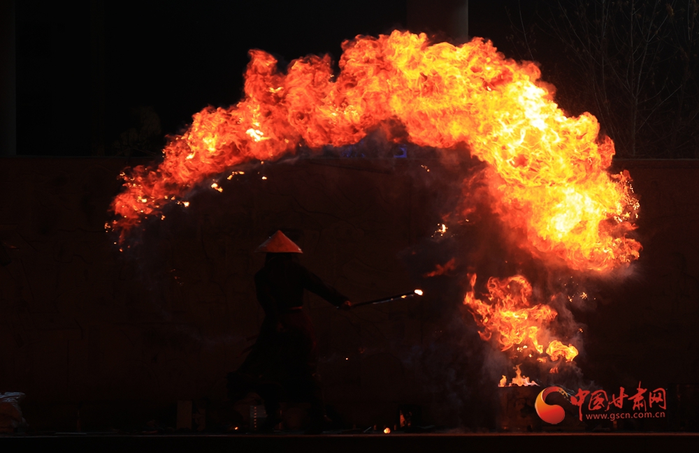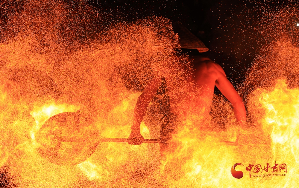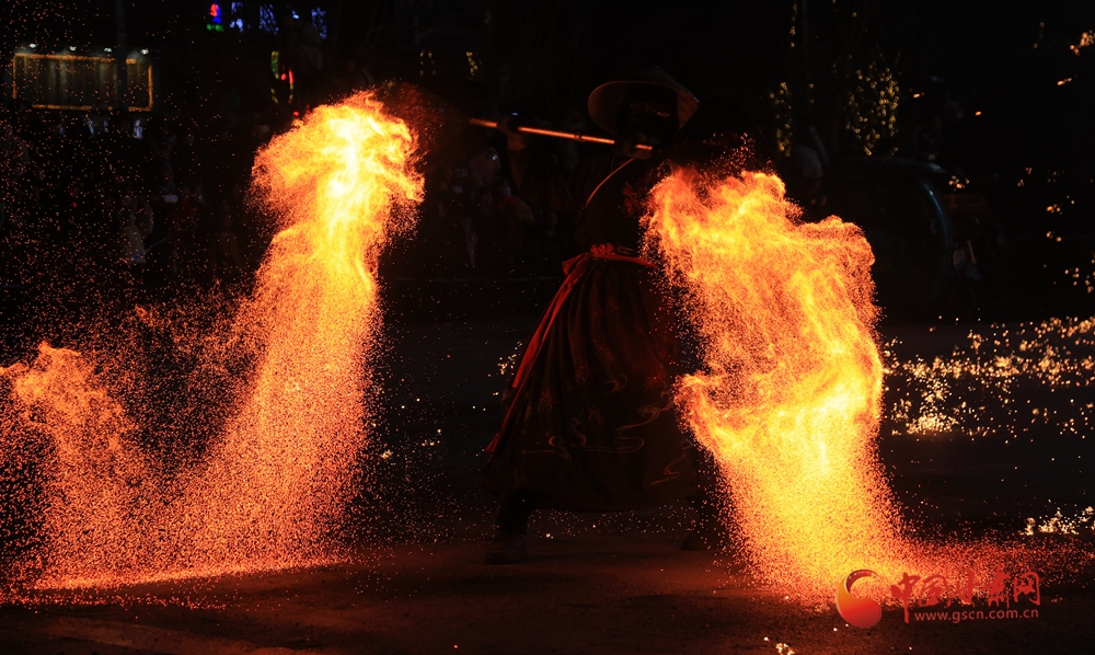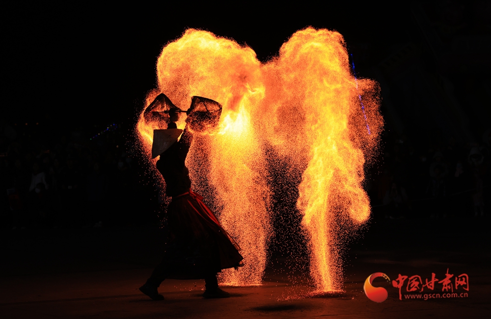 春節(jié)期間,在臨夏永靖劉家峽太極廣場上進(jìn)行的打鐵花和火壺表演吸引了不少觀眾,營造了濃濃的節(jié)日氛圍。
