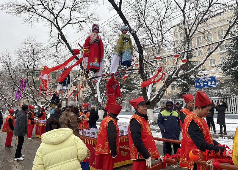 鑼鼓聲中,社火隊員們身著鮮艷的服飾,手持彩旗、花傘,踏著歡快的步伐,依次登場。舞龍、舞獅、秧歌等傳統(tǒng)社火節(jié)目輪番上演,引得居民紛紛駐足觀看,博得陣陣喝彩,群眾紛紛拿出手機,記錄下一個個精彩瞬間,熱鬧的社火和喜笑顏開的觀眾構(gòu)成了一幅歡天喜地、和諧美好的新春畫卷。