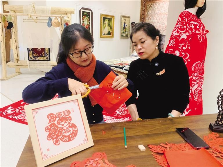 2007年,安寧剪紙被列入安寧區(qū)第一批非物質(zhì)文化遺產(chǎn)代表性項(xiàng)目名錄,2011年又成功入選蘭州市第二批非物質(zhì)文化遺產(chǎn)代表性項(xiàng)目名錄。52歲的剪紙藝術(shù)家史婷,是國家級非遺代表性傳承人。春節(jié)前夕,史婷剪紙工作室里人來人往,熱鬧非凡。她以“蛇元素”為主題,創(chuàng)作了《蛇盤兔》《雙蛇送?!返茸髌?,還有福字、掛歷、抱枕等特色剪紙作品。一把剪刀在她的手中上下翻飛,剪出了“指尖上”濃濃的年味兒。