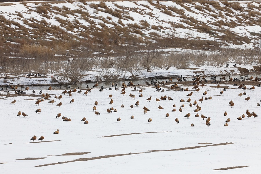近日,甘肅秦王川國家濕地公園迎來候鳥遷徙高峰,國家二級保護(hù)動物斑頭秋沙鴨、白骨頂,成群結(jié)隊(duì)的赤麻鴨、綠頭鴨以及優(yōu)雅的白鷺構(gòu)成“萬羽翔集”的生態(tài)畫卷,印證濕地生態(tài)系統(tǒng)的顯著改善。