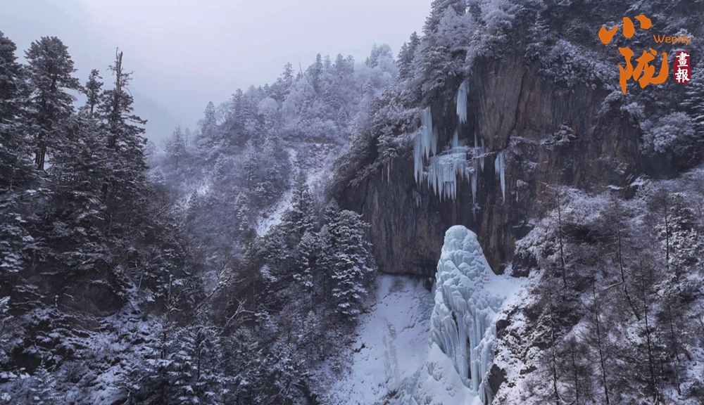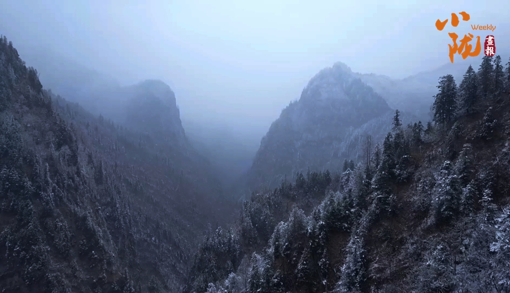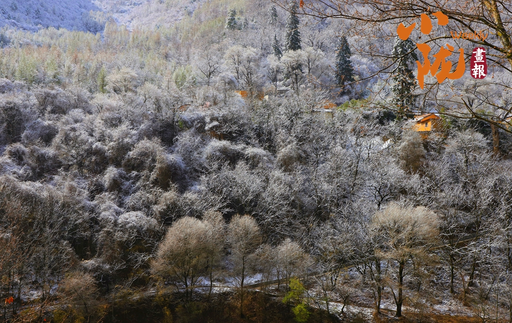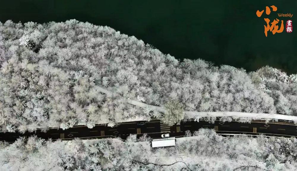 遠(yuǎn)峰近林,銀裝素裹,似是素手描繪的水墨畫(huà)卷。
