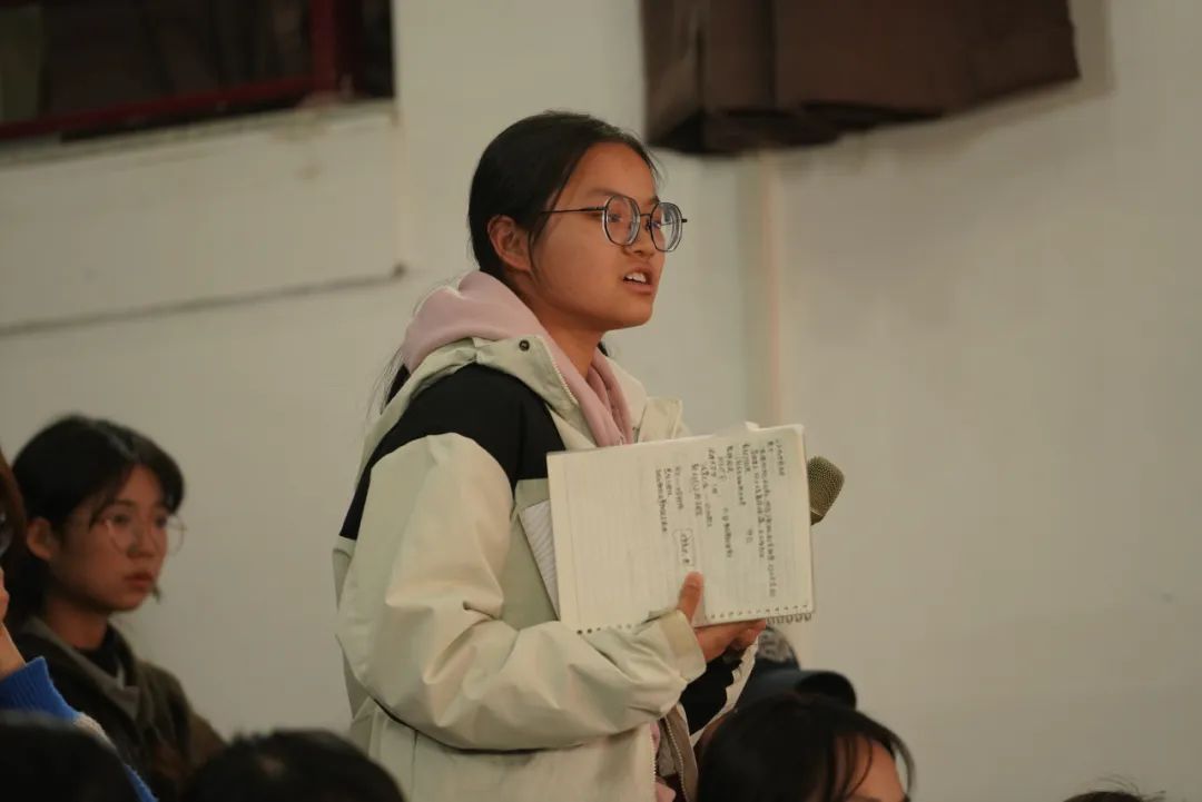 嘉賓發(fā)言環(huán)節(jié)結(jié)束后,同學們積極提問,林紅衛(wèi)從多個寫作角度解答了大家的困惑。她強調(diào),寫作需要用心觀察生活,通過反復練習將情感外化為行動,傳遞生活中的真善美。