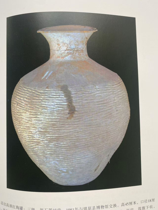 籃紋長頸紅陶罐(鎮(zhèn)原縣博物館藏)
