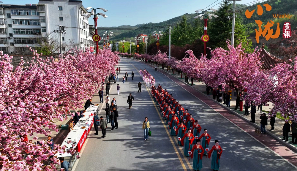 櫻花大道上,來自縣內(nèi)外的旗袍、漢服愛好者,或款步前行、或載歌載舞,古風(fēng)華服與粉色的櫻花交相輝映,為這座小城增添了一份獨(dú)特的溫婉與詩(shī)意。