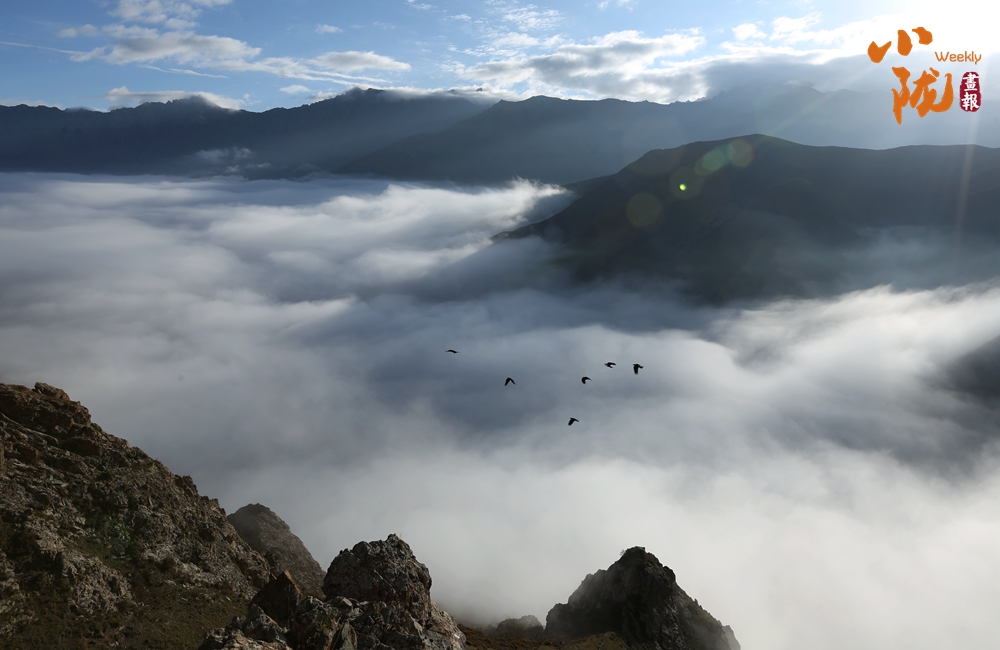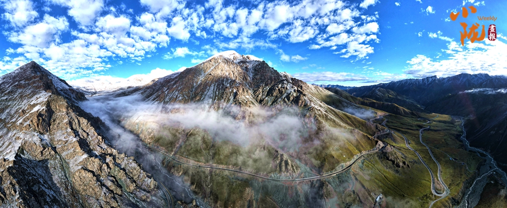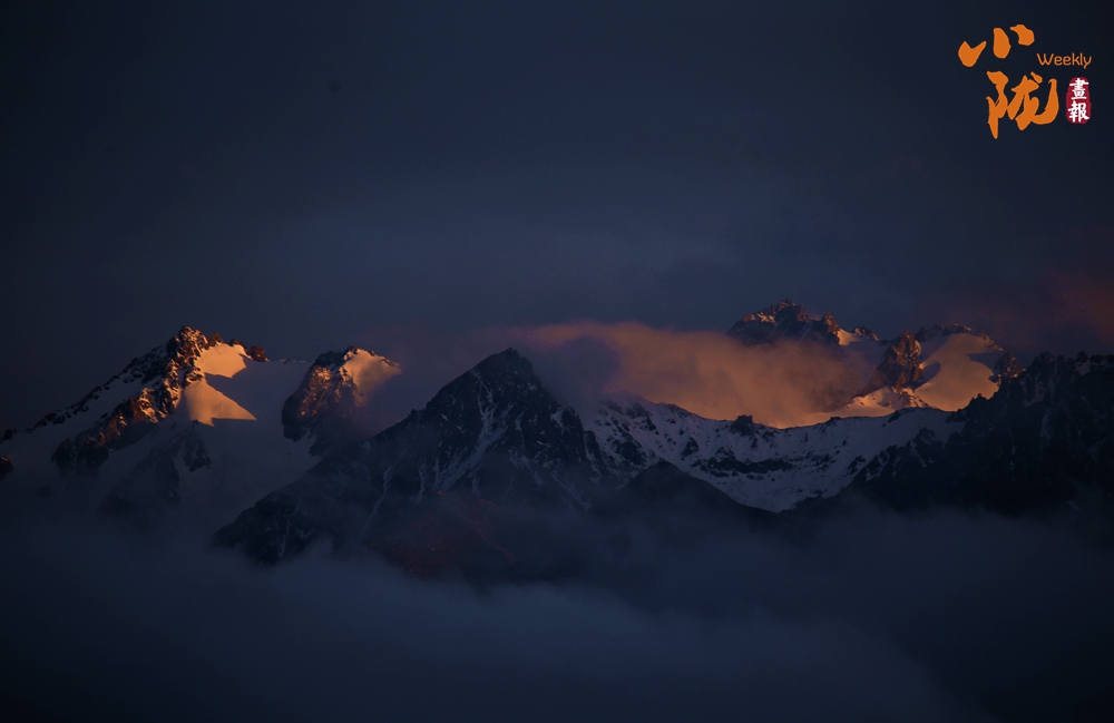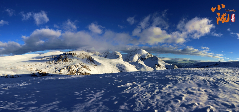側(cè)目而視,近日一場(chǎng)降雪和夏日閑云相伴相依,近處的雪和遠(yuǎn)處的云相映成趣,共同把天空擦拭得深藍(lán)如鏡。這種“積雪長(zhǎng)留峰素裹,浮云飄忽去無邊”的夢(mèng)幻景色,會(huì)將你平日里積蓄在心頭的那些世俗凡塵濯洗得干干凈凈,有一種遠(yuǎn)離人世的幻覺。
