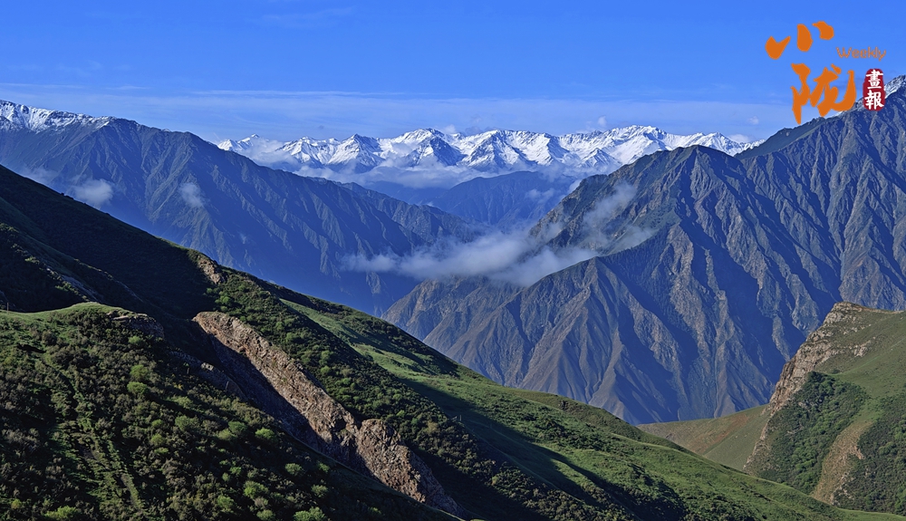 祁連雪峰周圍群峰羅列、層巒疊嶂,高低延綿的群山被此起彼伏的林海包圍,像一道道五彩的波浪,郁郁蔥蔥,生機盎然。站在祁連山巔俯瞰,冰川積雪與綠洲農田、森林構成震撼人心的生態(tài)畫卷。