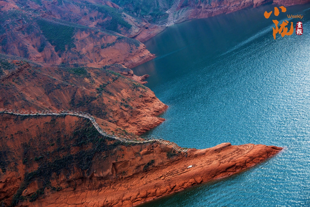 附近山塬如“神龍?zhí)阶?rdquo;般伸進(jìn)庫(kù)區(qū),碧綠水色與赭色丹霞相映成趣,紅巖綠水相融相撞,沒有絲毫違和感。從大橋邊的公路上山,可以鳥瞰整個(gè)庫(kù)區(qū)和大橋美景,開闊的水域讓你心曠神怡,一道飛虹橫跨波光粼粼的庫(kù)區(qū),夕陽(yáng)照耀下,滿眼瑰麗。