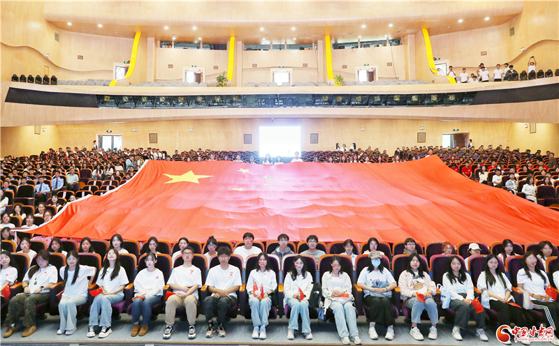 伴隨著震撼的誓言,一面巨大的五星紅旗從會場后方徐徐展開,幾乎鋪滿整個會場,“扎根西部、報效祖國”的豪情與壯志在現(xiàn)場涌動。
