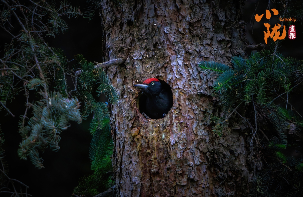黑啄木鳥是一種大型的啄木鳥。它們的體長可達(dá)到45-50厘米,翼展可以達(dá)到65-75厘米,體重在250-350克之間。其外形非常有特色,它們的羽毛主要是黑色的,胸部和腹部有一些白色的斑點(diǎn),頭部有一個(gè)紅色的冠羽,這是它們的顯著特征之一。黑啄木鳥的喙非常強(qiáng)壯,呈灰黑色,非常適合在樹木上啄洞。