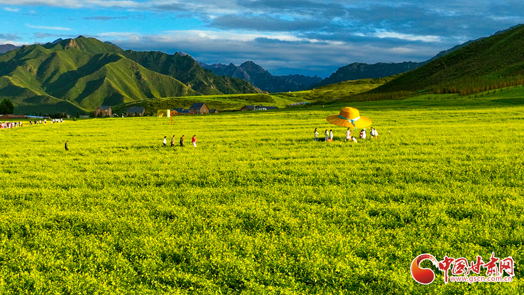 7月19日,張掖市民樂縣扁都口景區(qū)萬畝油菜花盛放。金黃的花海如巨毯鋪展,與草原綠野相接。微風(fēng)輕拂,花浪層層涌動,空氣中彌漫著淡淡清香。藍(lán)天白云映襯下,景致美不勝收,成為河西走廊一道別致風(fēng)景,吸引了眾多游客前來觀光。