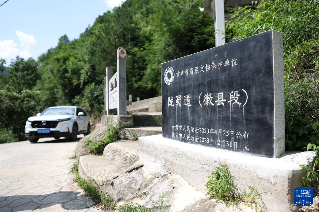 7月14日在甘肅省隴南市徽縣大河店鎮(zhèn)青泥村拍攝的青泥驛石碑。新華社記者 陳斌 攝