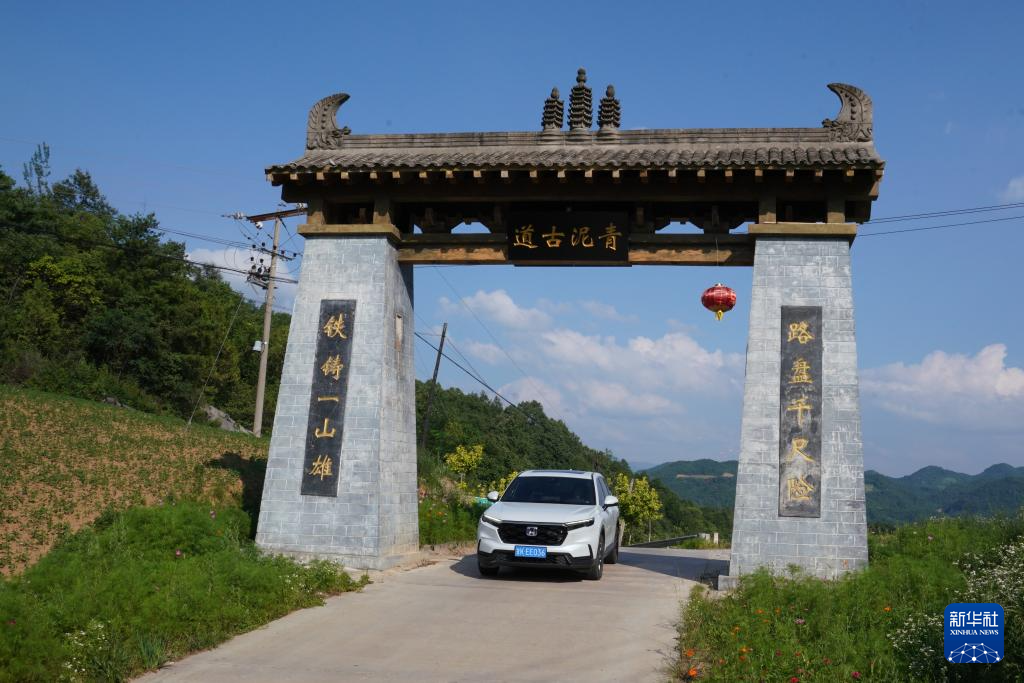7月14日,一輛汽車行駛在青泥嶺上的鄉(xiāng)村公路上。新華社記者 陳斌 攝