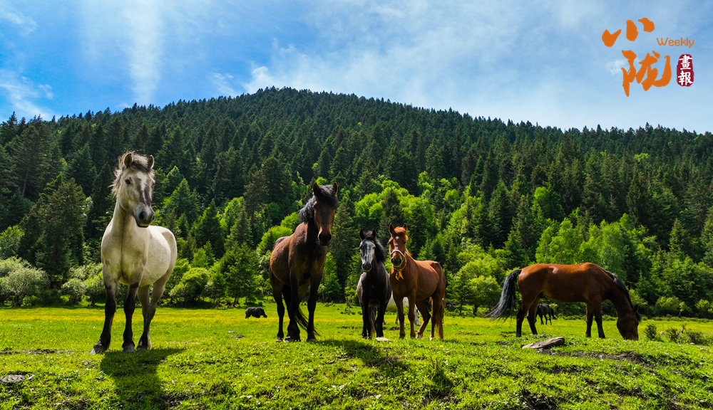 云朵潔白如雪,碧綠的草甸上繁花似錦,散發(fā)著淡淡的清香,引得蜜蜂和蝴蝶翩翩起舞。成群的牦牛與駿馬悠然自得地啃食著青草,牧民的帳篷點(diǎn)綴其間,炊煙裊裊升起,勾勒出一幅寧靜祥和的牧居生活圖景。