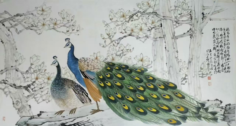 2009年,一幅工筆《粉蝶戲牡丹》的成功售出,成為王自強藝術生涯的轉折點。這幅細膩靈動的作品不僅帶來經濟收益,更讓他意識到傳統(tǒng)工筆畫的市場潛力。此后十年間,他創(chuàng)作的《孔雀牡丹》等工筆畫作屢獲佳績,八尺整張作品曾拍出2萬余元高價。但真正讓他在書法界嶄露頭角的,是對漢隸的深入探索。