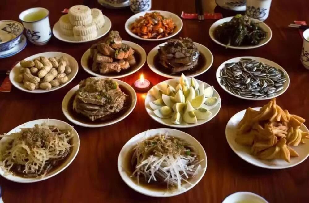——“十三花”,寓意胡太后以民為本的執(zhí)政理念;城內(nèi)四個葷菜,寓意人民四季安康、幸福美滿;骨頭碟和懸肉碟,寓意父骨母血、尊老孝親;肝子碟和雞蛋碟,寓意肝膽相照、心心相??;四個水菜碟子水圍城,寓意順風(fēng)順?biāo)?、四方平安;城外瓜籽花生碟,寓意多子多福、多祿多壽;路食和果子,寓意衣豐食足、一路平安;最中間一個大碟全盤為中心,寓意團(tuán)結(jié)聚力、天下一心。