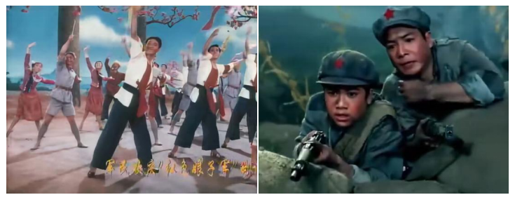 大眾傳播時(shí)代,中央電視臺(tái)的轉(zhuǎn)播率先將《紅軍不怕遠(yuǎn)征難》從劇場(chǎng)送入千家萬(wàn)戶(hù)。1985年,舞蹈被攝制成電影并全國(guó)公映,從機(jī)關(guān)單位到中小學(xué)校,組織化的集體觀看使其從即時(shí)性的舞臺(tái)呈現(xiàn),延伸為可供反復(fù)欣賞的歷史影像。與此同時(shí),舞蹈中那些震撼人心的畫(huà)面與造型,被凝固定格為經(jīng)典圖像,廣泛進(jìn)入教材、讀物等宣傳載體,從流動(dòng)的舞臺(tái)藝術(shù)轉(zhuǎn)化為深入人心的視覺(jué)符號(hào)。作品中那些簡(jiǎn)潔而富有象征意義的舞蹈語(yǔ)言,也成為全國(guó)各地文藝團(tuán)體與學(xué)校學(xué)習(xí)、演繹的藍(lán)本,在基層舞臺(tái)上被不斷復(fù)現(xiàn)與傳承。